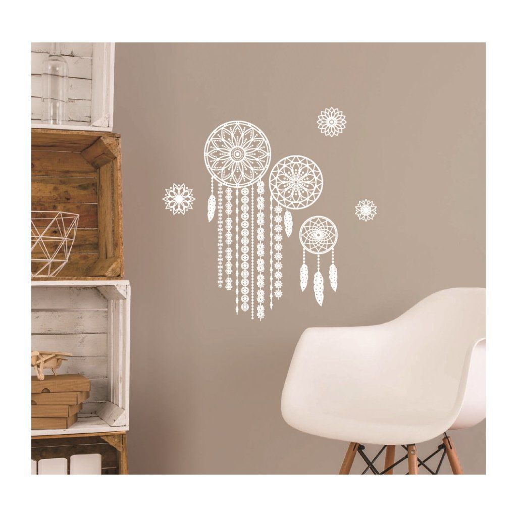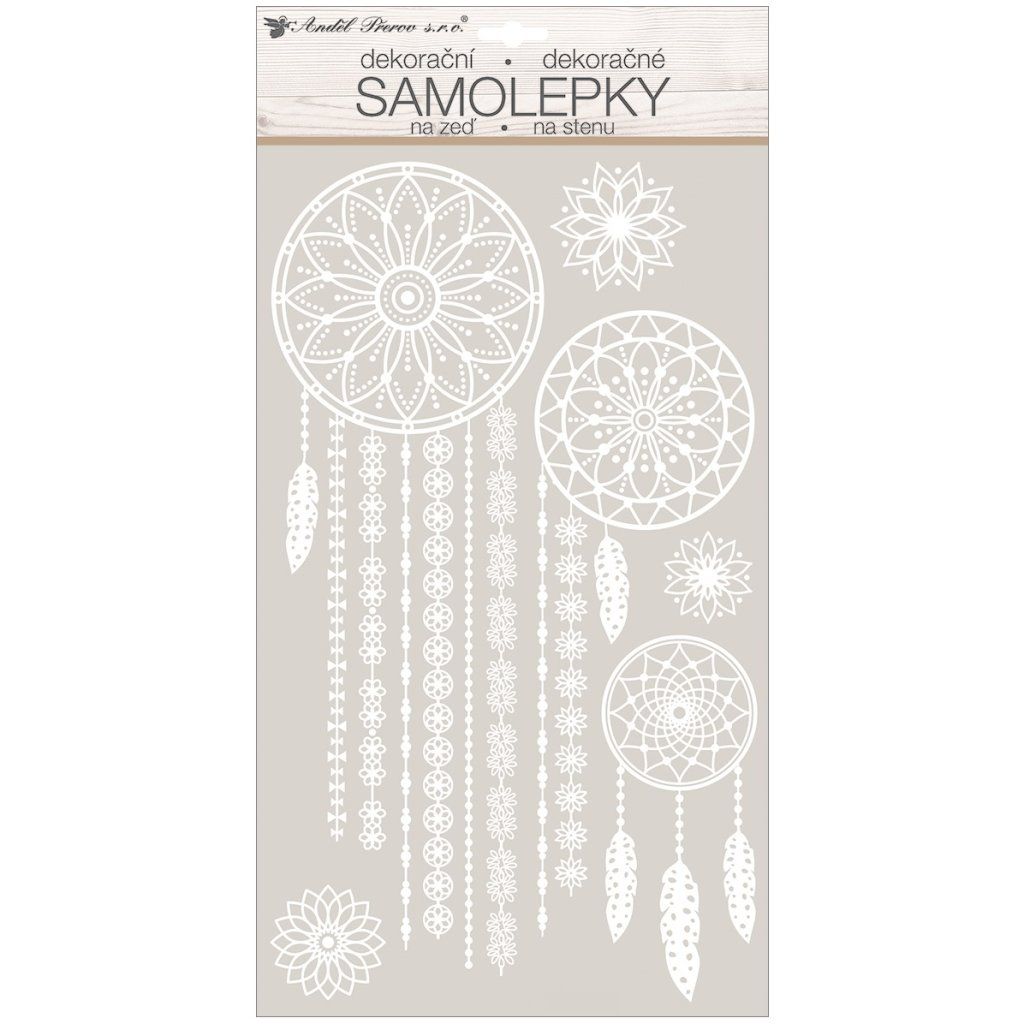 Dekorační bílá samolepka na zeď silueta - Lapač snů