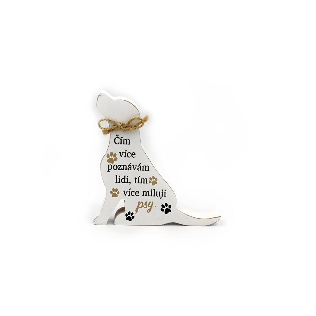 Dřevěná cedulka ve tvaru pejska s českým textem je decentní dekorací vhodnou do všech místností u vás doma.