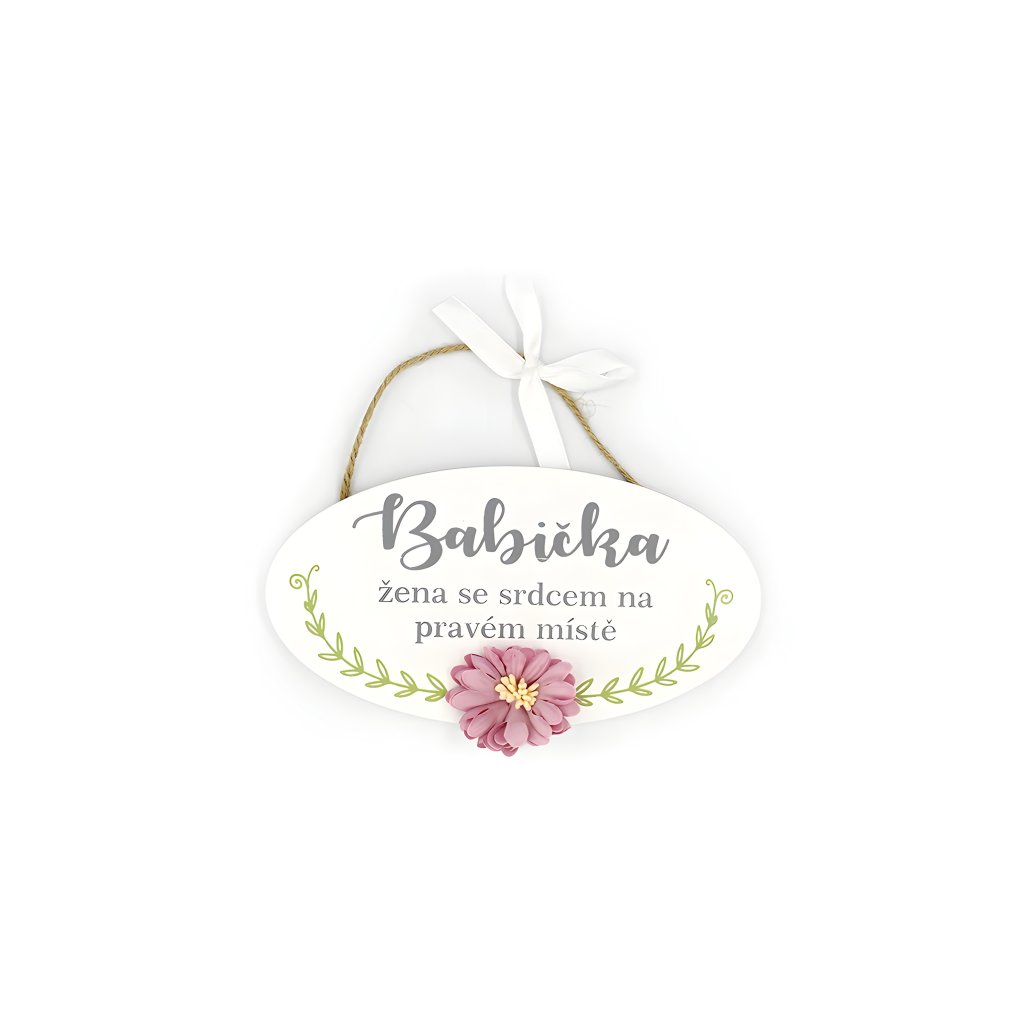 Dekorační cedulka k zavěšení pro babičku doplněna květinou.