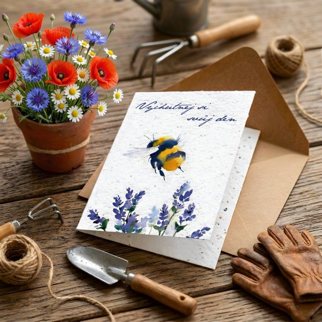Dárkové přání s mixem semínek divokých lučních květin pro čmeláky.