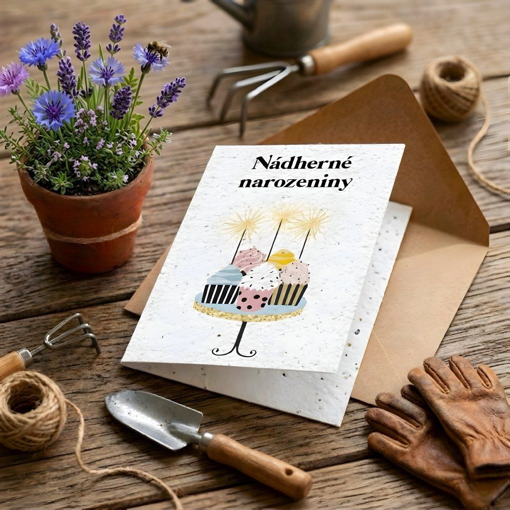 Rostoucí přání s kraftovou obálkou - Nádherné narozeniny