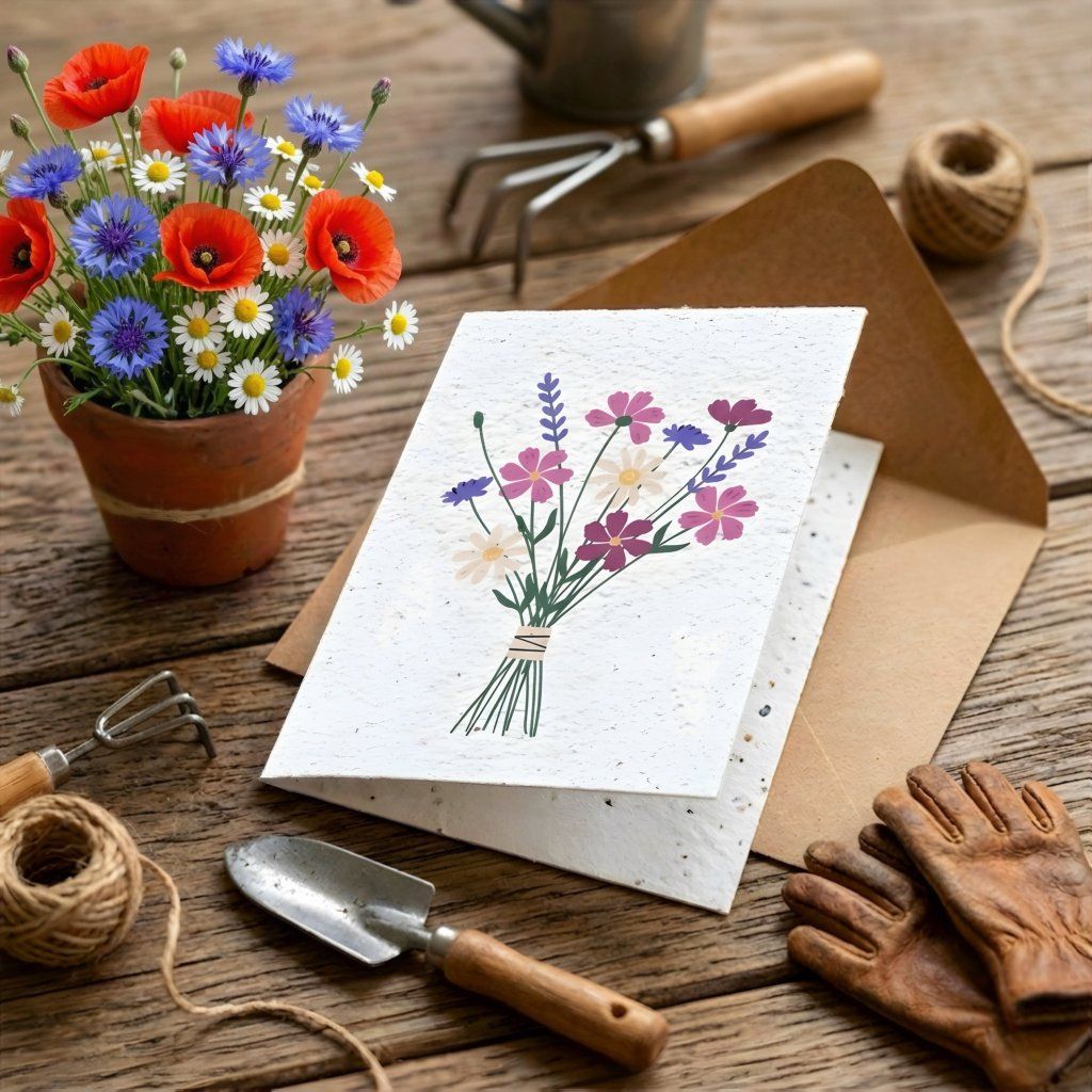 Rostoucí přání s kraftovou obálkou - Pugét květin
