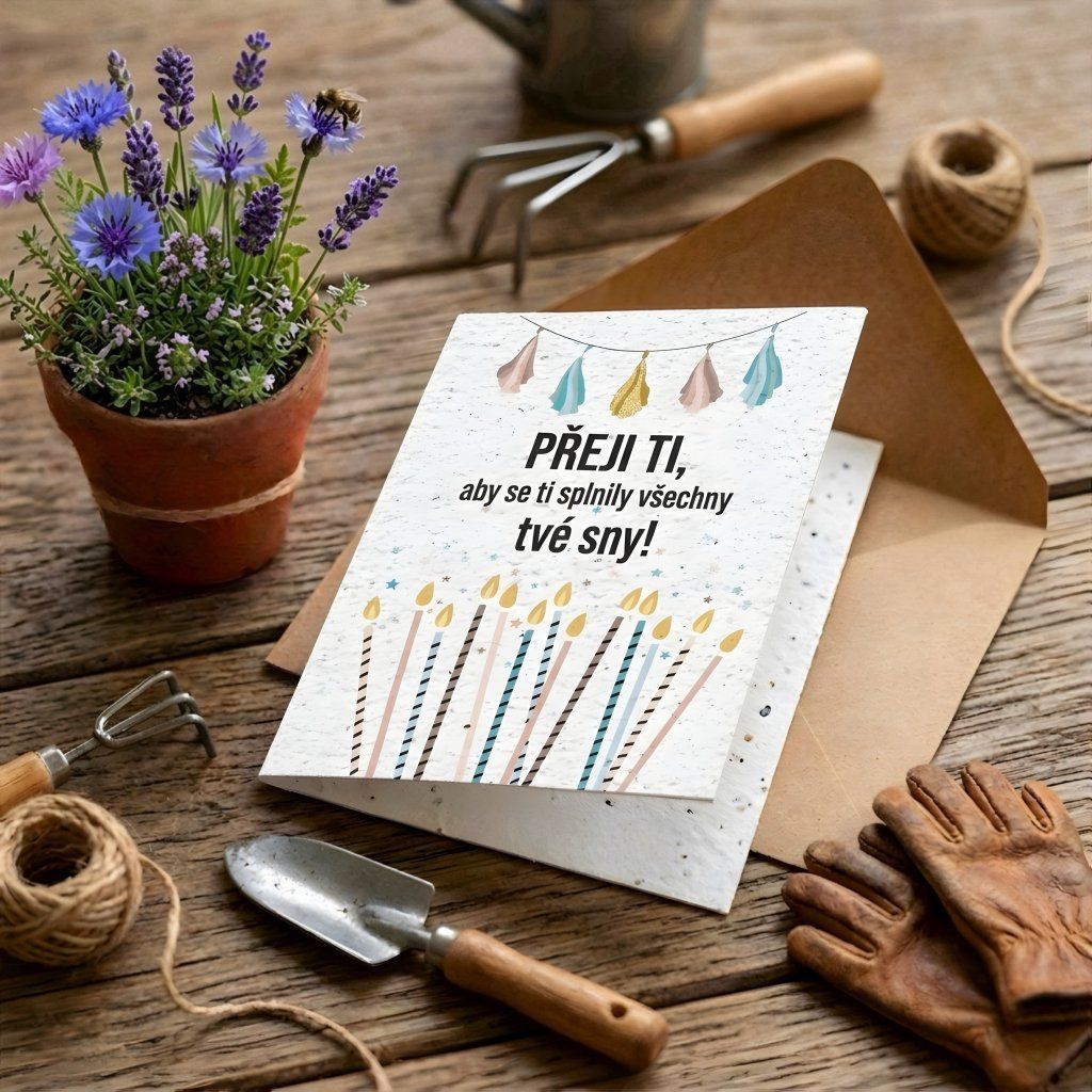 Dárkové přání s mixem semínek květin pro včely a motýly.