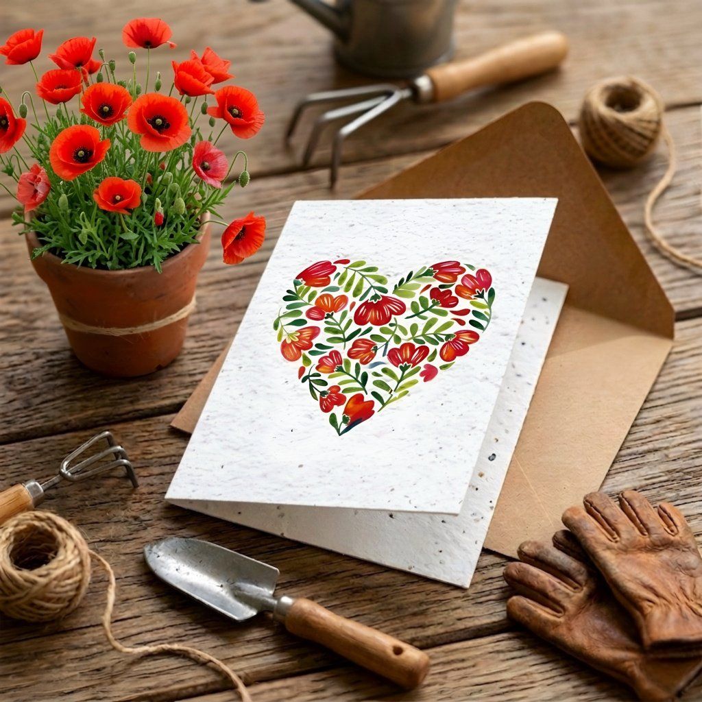 Rostoucí přání s kraftovou obálkou - Srdce vlčích máků