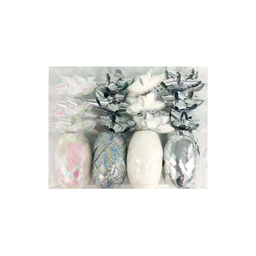- Barvy rozet a stuh: stříbrná, stříbrná holografická, bílá lesklá a bílá perleťová