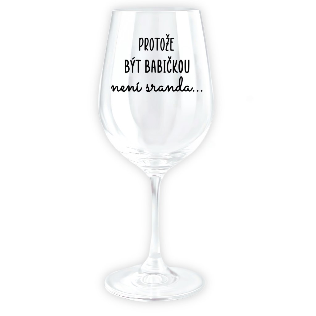 Sklenice na víno s českým textem o objemu 450 ml.