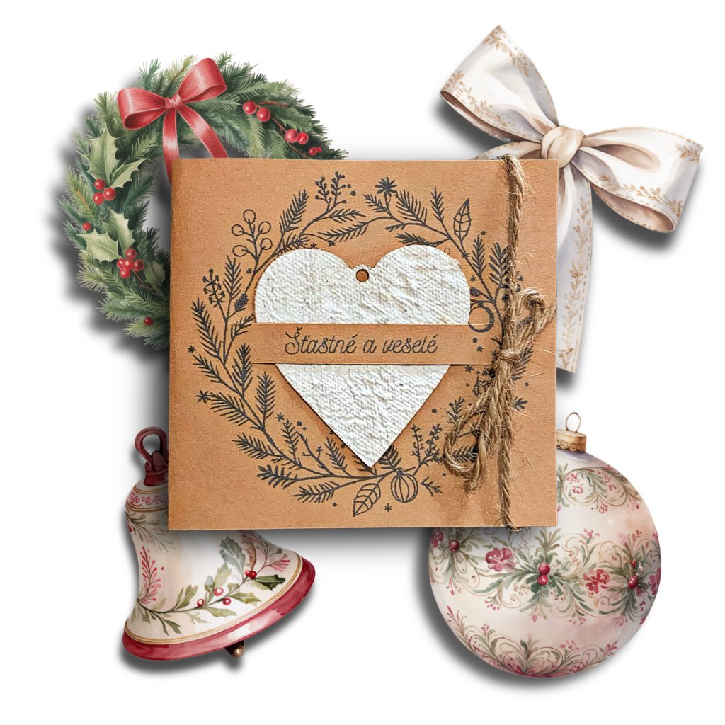 Vánoční dárkové přání se semínky bylinek (meduňka/bazalka).
