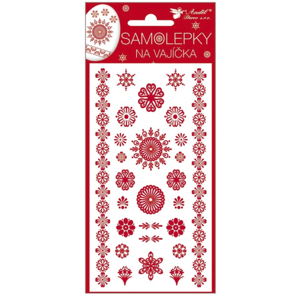 Gelové samolepky na vajíčka s červeným vzorem.