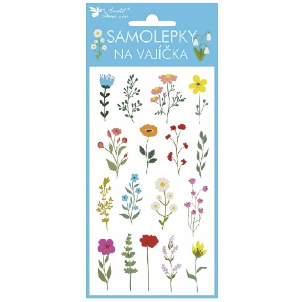 Gelové samolepky na vajíčka s motivem barevných lučních květin.