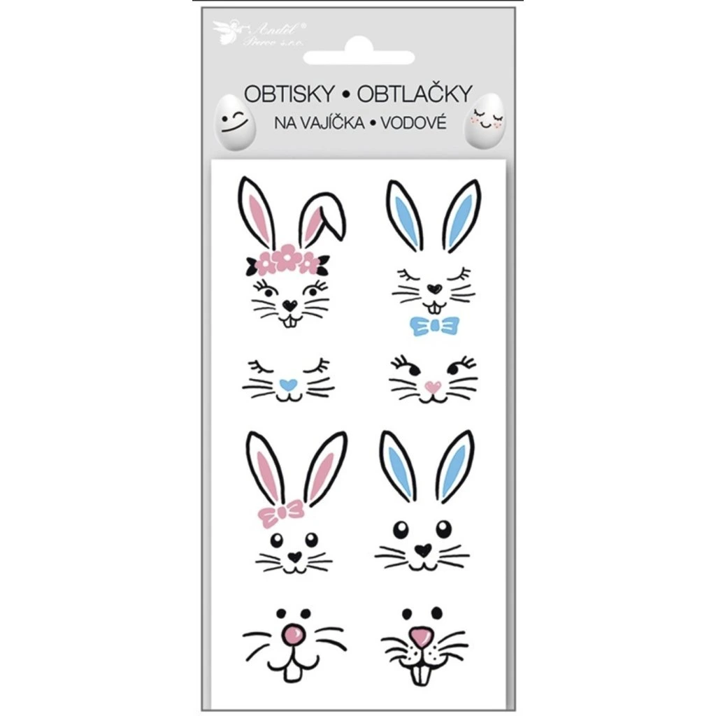 Vodové obtisky na vajíčka s motivem zajíčků.
